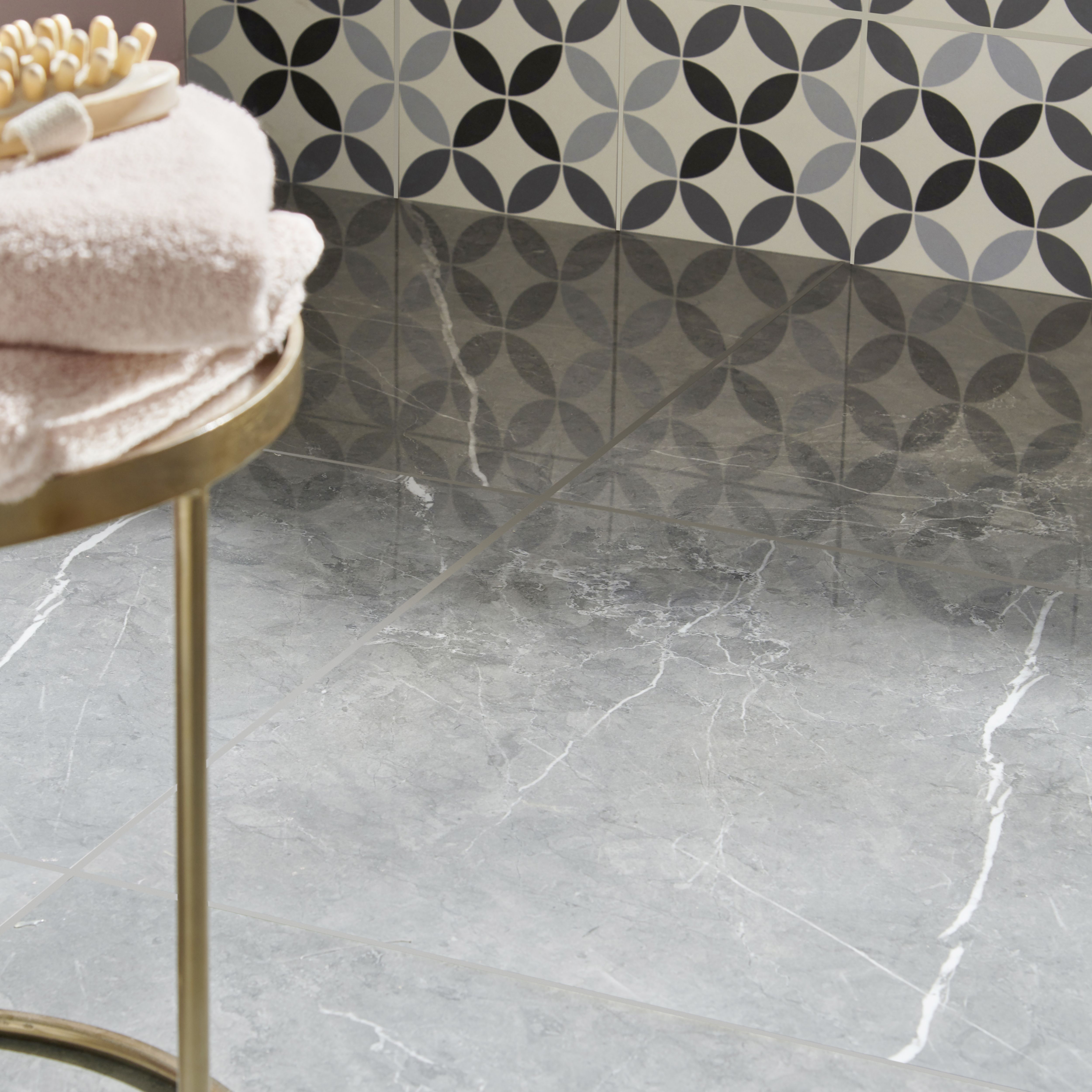 Ultimate Grey Gloss Marble Effect Porcelain Indoor Wall Floor Tile Pack Of 3 L 595mm W 595mm Tradepoint
